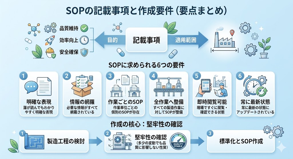 実用性の高いSOPを作成するにあたり、以下の要件を満たすことが求められる。