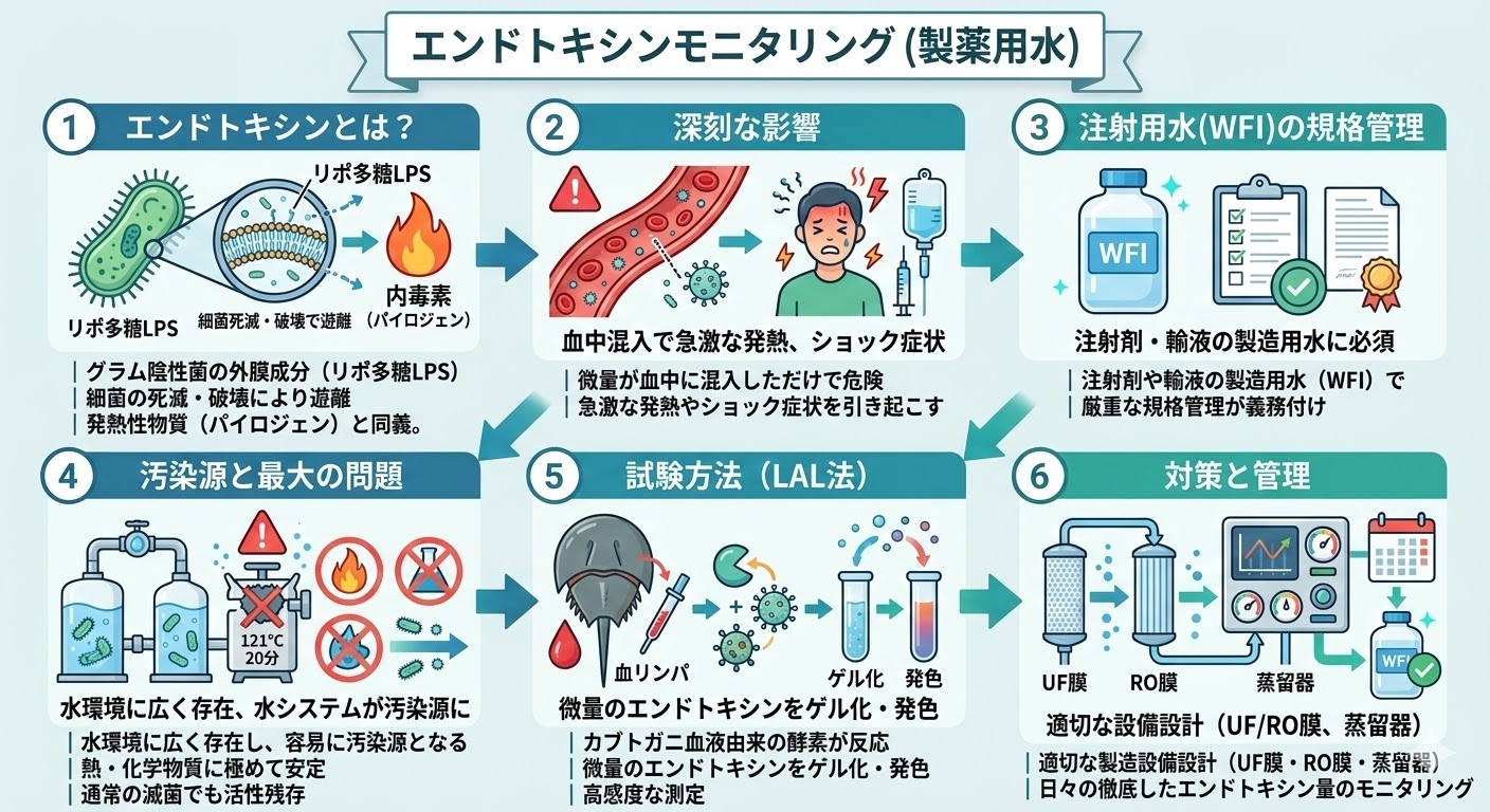 エンドトキシンモニタリングは、製薬用水(特に注射用水)や最終製品が発熱性物質に汚染されていないことを保証するための極めて重要な試験である。