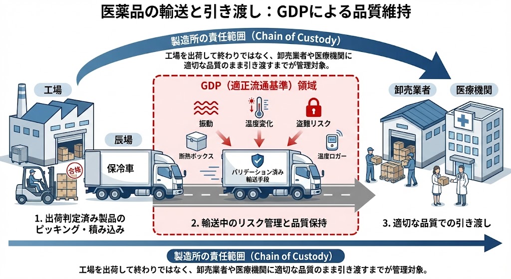 ここからはGDP(Good Distribution Practice)の領域となる。